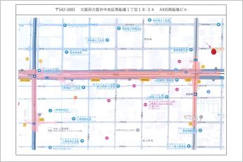 ※地図上の「対象地」は「〒542-0081 大阪府大阪市中央区南船場3丁目7−29」の場所を指しています。実際の場所ではない場合がございます。詳しくはお問い合わせください。