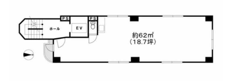 (約18.7坪)事務所仕様。飲食店不可。保証会社加入要。